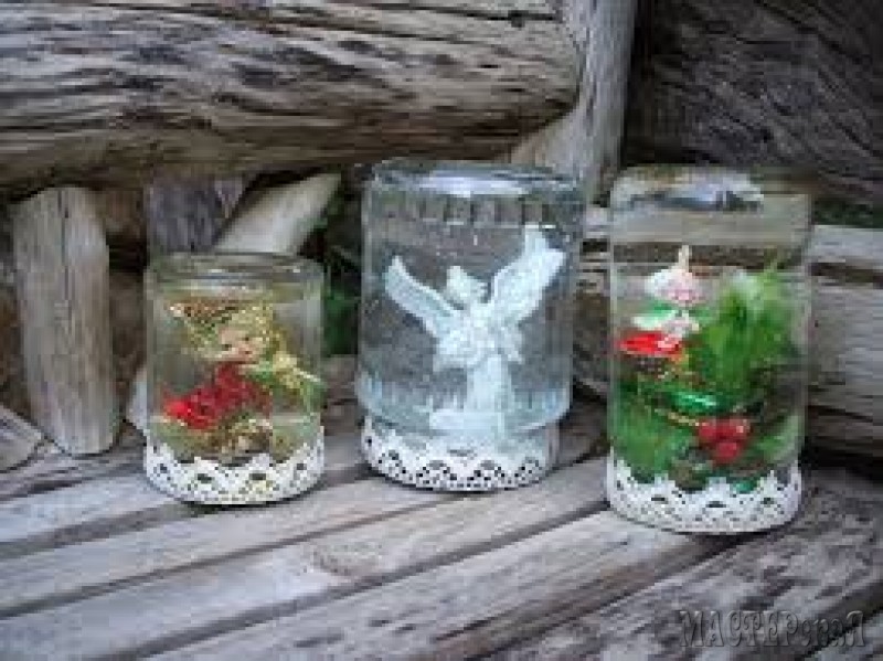 Сначала подготавливаем баночку. Её нужно хорошо вымыть и просушить.На внутреннюю сторону крышки приклеиваем наши заготовки