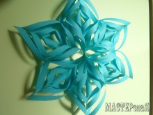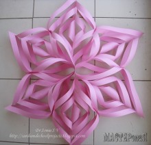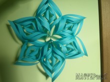 Нашла очень красивую объемную снежинку из бумаги. Каждый лучик делается отдельно. Бумагу лучше брать не слишком тонкую. Тонкая подходит для снежинок которые вырезаются из бумаги. А наша снежинка должна быть плотненькой и хорошо держать объем. Кстати, подобную снежинку можно сделать их мешковины. Мастер класс ЗДЕСЬ