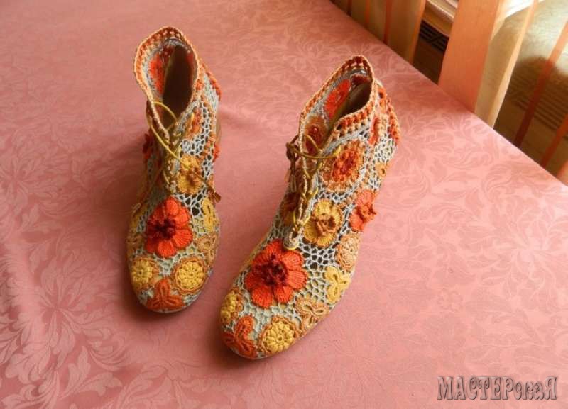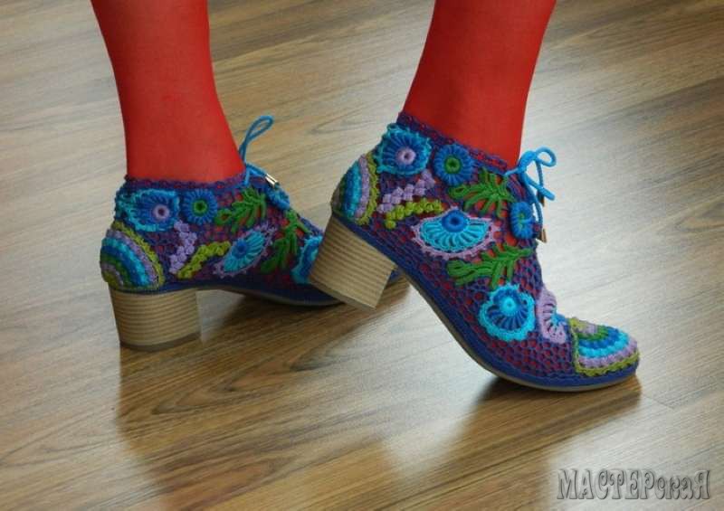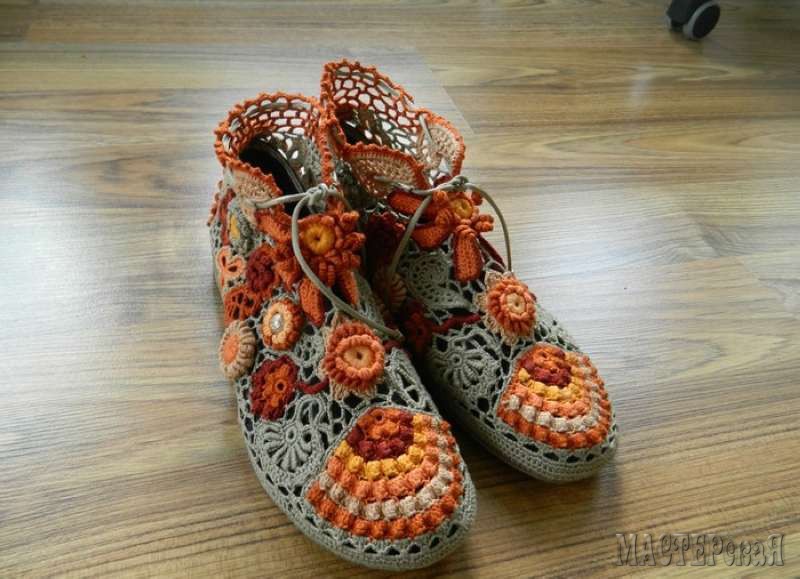 Украшать и преображать вязанием можно всё, что угодно, в том числе и обувь.Сегодня вязаная обувь находятся на пике популярности. Смотрится такая обувь не просто оригинально, а эффектно и эксклюзивно. Вязальщицам сделать подобную обувь не составит труда. Делается как минимум двумя вариантами: обувь можно просто красиво обвязать, а можно реставрировать старую изношенную обувь, отрезав от неё верх. Главное, чтобы подошва была целой. Но всё по порядку.