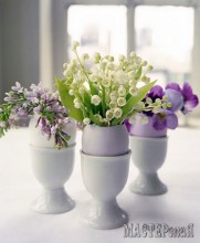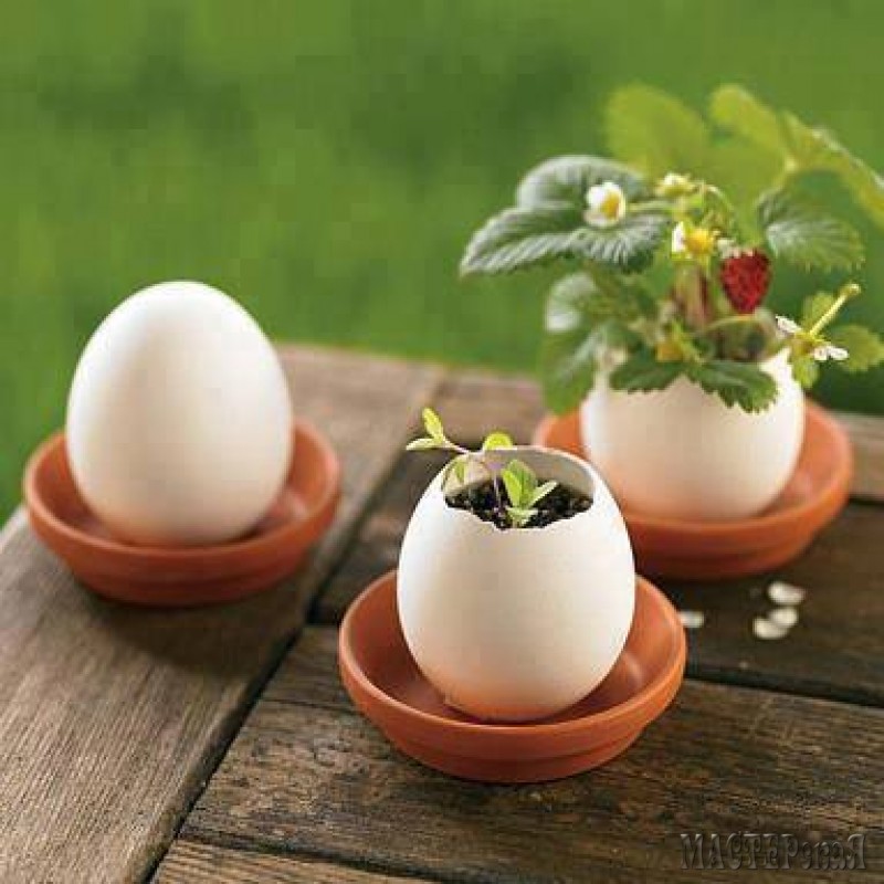 Приклеиваем скорлупки к подставочкам горячим клеем