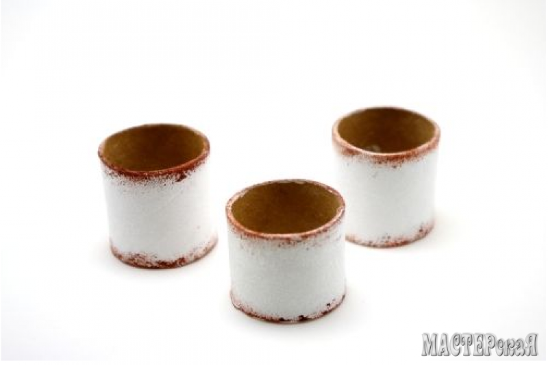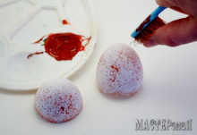 Как и скорлупку, красим белой краской и наносим коричневые брызги