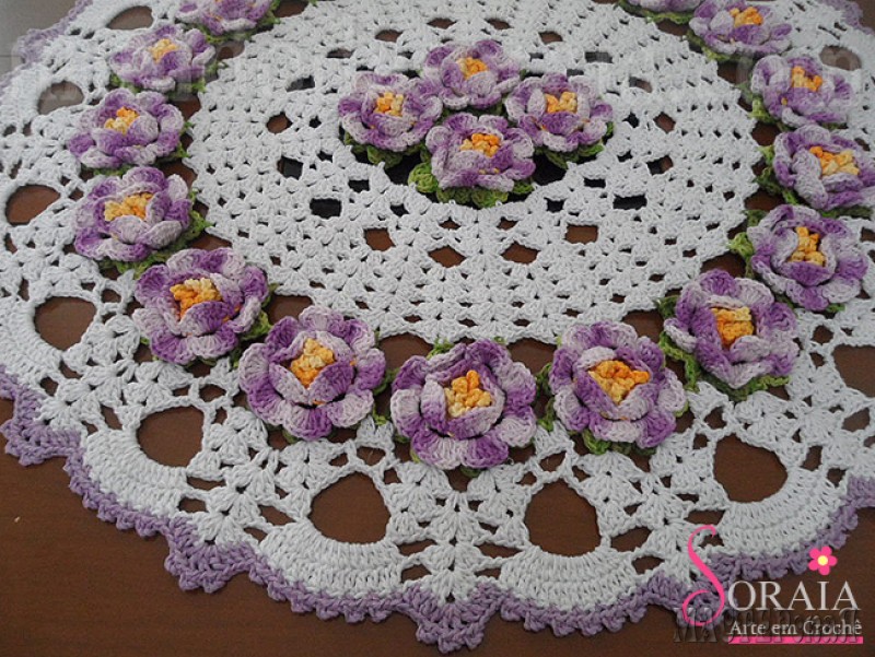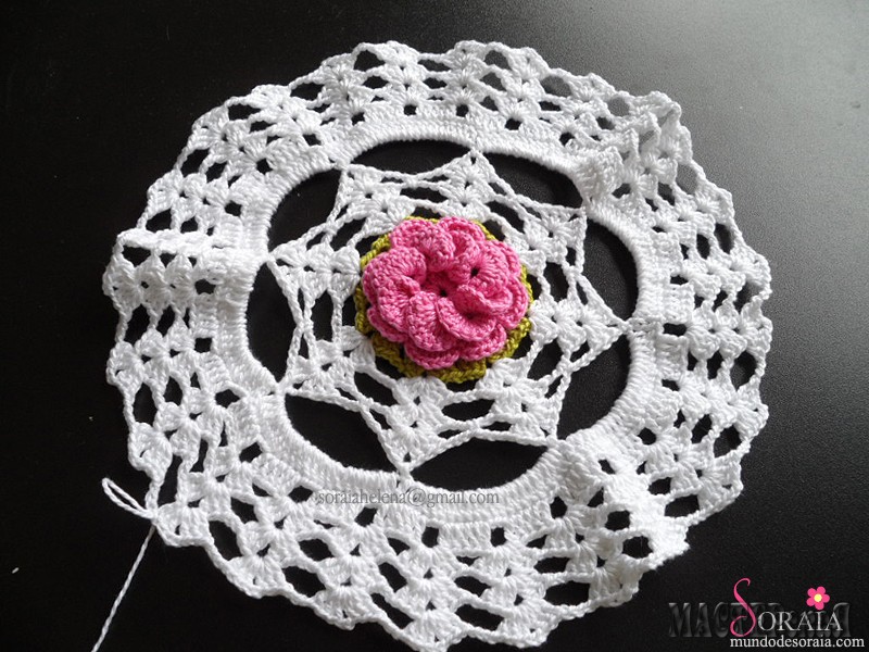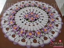 Нашла очень красивые салфетки с объемными цветами. Кака вязать объемные цветы знает любая вязальщица. А вот как связать с ними салфетку можно посмотреть из подробного фото мастер класса. Я не стала ничего подписывать под фотографиями, они настолько четкие, что все можно по ним прекрасно рассмотреть