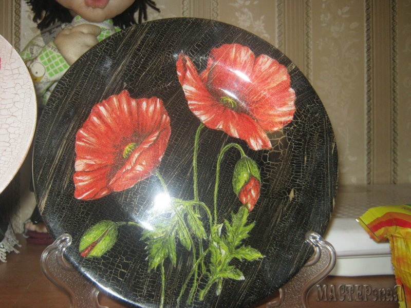 Я на тарелочку с маками давно засматриваюсь в нашей лавке.Такой кракелюр на них красивый. Молодец Маринка!!!!!!!