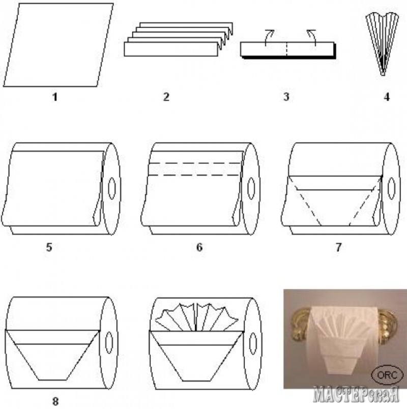 Оригами из туалетной бумаги. Если вам однажды пришлось побывать в туалете японского ресторана или гостиницы, вы наверняка заметили, что кончик туалетной бумаги всегда сложен в форме треугольника. Изначально этот треугольничек служил знаком того, что уборка туалета закончена, к тому же, так легче найти и ухватиться за край туалетной бумаги.