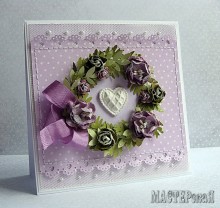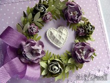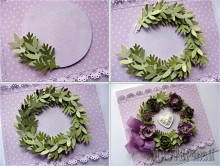 Для того, чтобы круг выделялся на открытке, к нему с внутренней стороны приклеивают кусочки двухстороннего скотча. На листики и розочки также приклеивают двухсторонний скотч