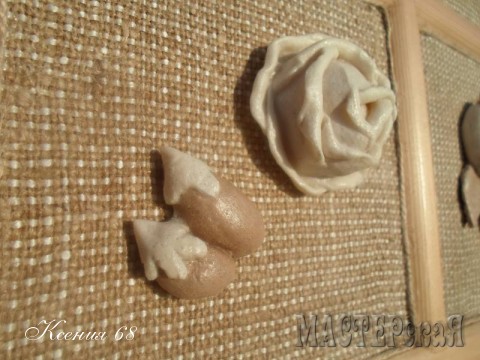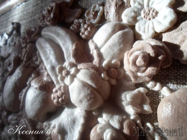 Ну ты и молодееееец! Все так естественно, натурально! Мне вообще кондитерку напоминает! Я пока досмотрела до конца, изошлась слюнями! Все такое кофейно-молочное А рамочка Гуру как к стати! А я посмотрев эту рамочку, все размышляла, куда я ее пристроила б? А туууууутааааа, цельный музей мукослажек показали! Вот это даааааа! Вот это полный восторг у меня вызвало! Браво Ксюша! Первый раз и такое классное панно получилось, просто супер!