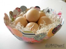 Когда кружков уже достаточно, оставляем вазу до полного высыхания.Затем осторожно снимаем её с формы, удаляем пакет. Пасхальная вазочка готова. Можно для прочности покрыть её лаком.