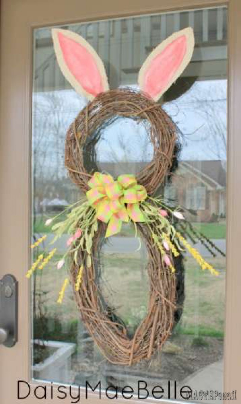 проволока, цветная бумага, ветки растений, трава, мох и многое другое. И сам венок можно сделать не просто курглым, а, например, в виде кролика. Предлагаю вам мастер класс по изготовлению пасхального кролика из виноградной лозы