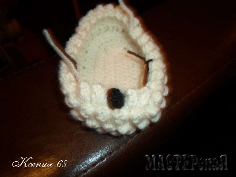 Пинетки СОБАЧКИ узором попкорн ср, 04/11/2015 - 10:18 Изменить отображение работыПосмотреть в виде фото Всем доброго времени суток. Видела в интернете подобные пинетки в виде барашков. Но мне захотелось связать именно собачек. Вот и связала Подошву вязала по этой схеме Затем - три ряда узором попкорн Складываем изделие и находим середину Отмечаем в каждую сторону равное количество узоров и фиксируем чем-нибудь, например, нитью другого цвета. Вяжем мысок: пять узоров попкорн. Вначале и в конце ряда узор соединяем в процессе вязания с боковым вязаньем. Средний узор вяжем нитью черного цвета. Это - будущий носик собачки. Закончив вязать первый ряд мыска, нить обрезаем. Вяжем еще два ряда. Мысок готов. Теперь провязываем по кругу еще три ряда узора. Ушки вяжем по этой схеме Присоединяем их к пинеткам одним рядом столбиков без накида.Пришиваем пуговицы-глазки и язычок ( пять воздушных петель обвязанных по кругу одним рядом столбиками без накида) Посмотреть в виде слайдов Пинетки СОБАЧКИ узором попкорн Всем доброго времени суток. Видела в интернете подобные пинетки в виде барашков. Но мне захотелось связать именно собачек. Вот и связала Пинетки СОБАЧКИ узором попкорн Пинетки СОБАЧКИ узором попкорн Пинетки СОБАЧКИ узором попкорн Пинетки СОБАЧКИ узором попкорн Пинетки СОБАЧКИ узором попкорн Подошву вязала по этой схеме Пинетки СОБАЧКИ узором попкорн Пинетки СОБАЧКИ узором попкорн Затем - три ряда узором попкорн Пинетки СОБАЧКИ узором попкорн Пинетки СОБАЧКИ узором попкорн Складываем изделие и находим середину Пинетки СОБАЧКИ узором попкорн Отмечаем в каждую сторону равное количество узоров и фиксируем чем-нибудь, например, нитью другого цвета. Пинетки СОБАЧКИ узором попкорн Вяжем мысок: пять узоров попкорн. Вначале и в конце ряда узор соединяем в процессе вязания с боковым вязаньем. Средний узор вяжем нитью черного цвета. Это - будущий носик собачки. Закончив вязать первый ряд мыска, нить обрезаем. Пинетки СОБАЧКИ узором попкорн Вяжем еще два ряда. Мысок готов. Теперь провязываем по кругу еще три ряда узора. Пинетки СОБАЧКИ узором попкорн Ушки вяжем по этой схеме Пинетки СОБАЧКИ узором попкорн Присоединяем их к пинеткам одним рядом столбиков без накида.Пришиваем пуговицы-глазки и язычок ( пять воздушных петель обвязанных по кругу одним рядом столбиками без накида) Спасибо всем кто заглянул ко-мне на огонек. Я всегда на связи Опубликовано на masterskaja.net. Копирование с указанием источника и автора публикации обязательно. Голосование за работу Не понравилось0 Понравилось0 Очень понравилось0 Отлично0 Отправить в Мой Мир Добавить в закладки Яндекс Добавить в закладки Вконтакте Класс! Рассказать в ЖЖ Добавить на Facebook Tweet This! Отправить в Мой Мир Рассказать в LiveInternet Добавить в Google Bookmarks Добавить на MicroBloggy Похожие материалы Костюм"... Кардиган Сумочка для... Сумка Платье "ДУПЛЕТ...