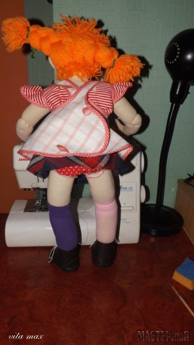 Спсибо,Ксющенька!Я наверное сегодня самая счастливая!Ровно год как вышла в свет моя первая кукла!Ботики шила первый раз ,даже страшно было браться,боялась кожу испотрить!Но вот моя озорная девочка готова,теперь не стыдно и показать!