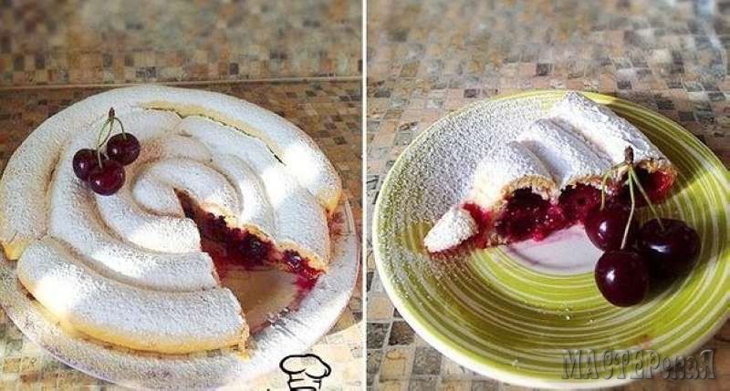 Нашла обалденный пирог с вишней. Думаю, что можно использовать абсолютно любую начинку. Замороженные фрукты и ягоды тоже подойдут.