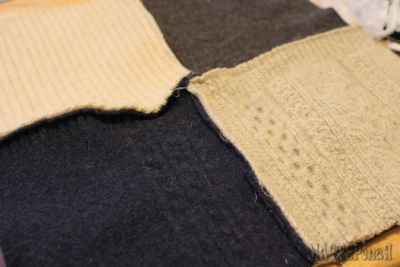 Затем готовое полотно опять укладываем на основу и пришиваем