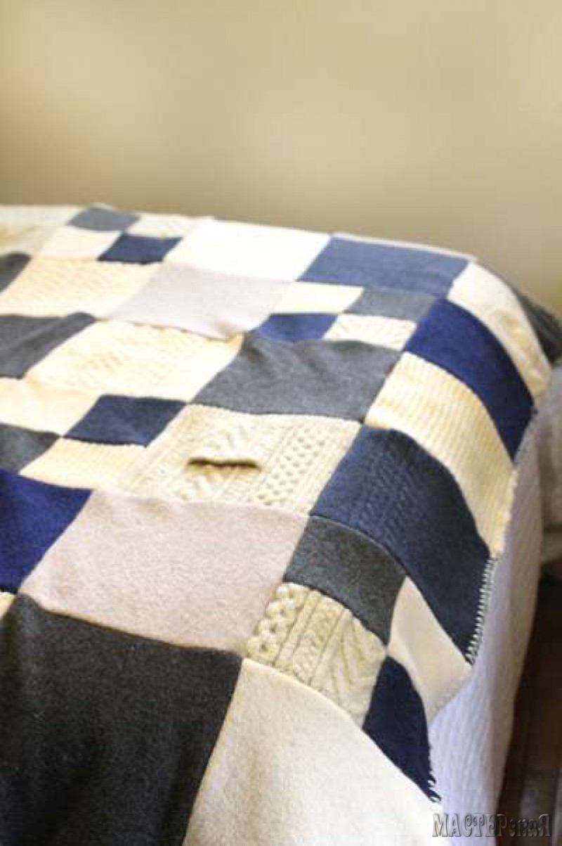 У каждого в доме найдется много старых, никому не нужных свитеров. Они либо морально устаревают либо это детские свитера из которых детишки просто выросли. Из таких-то вот свитеров и можно сшить отличный уютный плед.