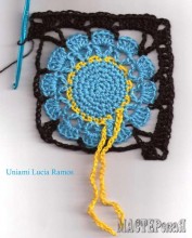 Шляпку обвязываем основной пряжей столбиками с одним накидом, формируя квадратный мотив.
