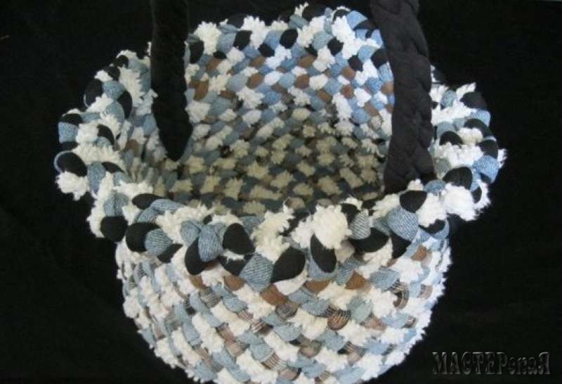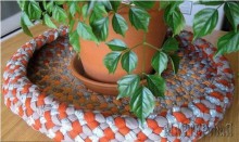 Из ткани можно сделать не только плетеные коврики, но и различные кашпо, подставки под горячее, салфетки, вазы, подносы и даже сумки.