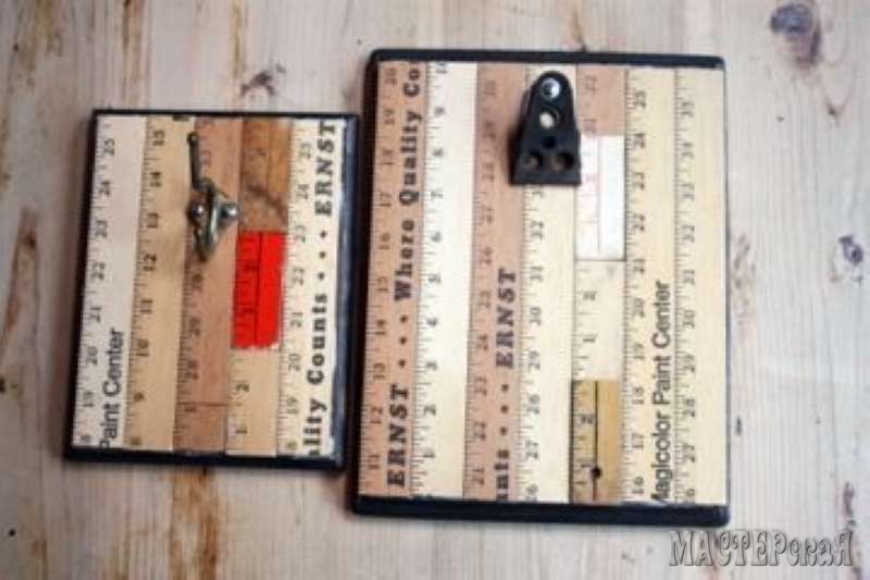 Из больших швейных линеек отрезаем бортики, приклеиваем их, а затем фиксируем маленькими гвоздикам