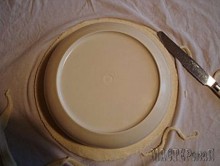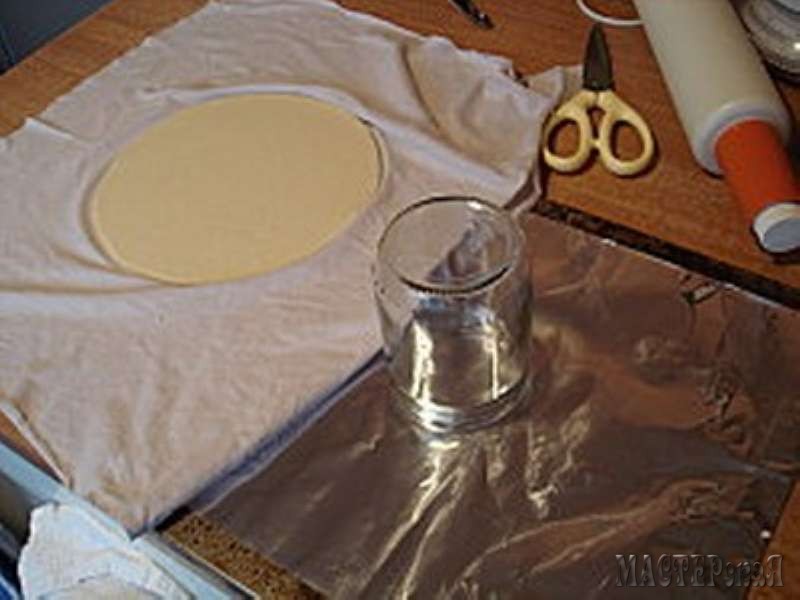 Берем блюдце и с помощью ножа вырезаем круг нужного диаметра