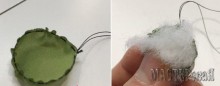 Заготовку для венка обматываем зеленой лентой и сверлим в ней дырочки