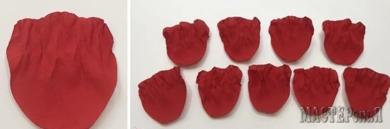 Вырезаем заготовки для лепестков из красной ткани