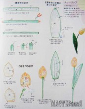 Ниже есть шаблоны лепестков и листьев тюльпанов, их можно переснять прямо с данной фотографии. Так же есть фото мастер класс по пошиву тюльпанов.