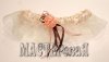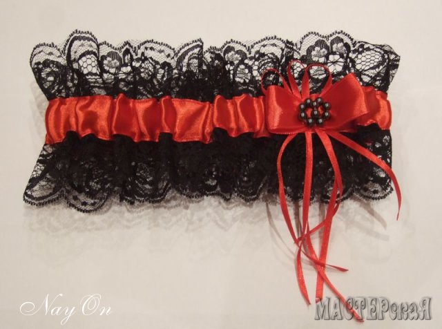 " В западных странах невесты часто надевают сразу две свадебные подвязки. Одну бросают гостям на свадебном приеме, а другую снимает муж в романтическом уединении первой брачной ночи. Сколько бы подвязок невесты вы не решили надеть, носят их обычно на правой ноге, чуть выше колена. Хотя опять-таки никаких конкретных традиций по этому поводу нет, поэтому вы можете носить подвязку и на левой ноге при желании." "Синий цвет – знак чистоты, поэтому свадебные подвязки раньше были только голубыми. Но сегодня это требование не соблюдается, ведь подвязка должна сочетаться с нарядом невесты. Однако можно отдать дань старинной традиции и сделать вторую подвязку, предназначенную исключительно для услаждения взора новоиспеченного мужа, именно голубой." К любой подвязке можно сделать в комплект вторую.
