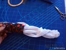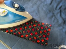 Сначала полотенце обшивается с двух сторон яркой тканью. Затем из такой же ткани вырезаются яблоки.В данном МК яблоки приклеиваются к полотенцу горячим утюгом. Я бы еще для прочности пристрочила яблочки швом "зиг-заг" По материалам melzamelo.blogspot.ru