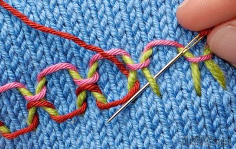 При виде ровного, гладкого, трикотажного полотна какого-нибудь вязаного изделия, иногда так и нанести на него свой авторский "мазок кистью", чтобы хоть как-то его украсить.Добавив всего несколько стежков объединённых в несложный узор или рисунок, можно добиться желаемого результата, всего за каких то пол часа.