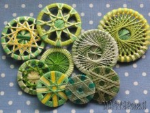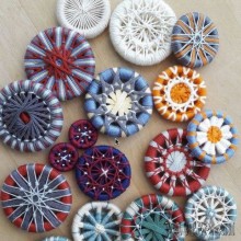 Пуговицы в технике Dorsets button. Из -за оригинального неповтиримого внешнего вида Dorset buttons широко используют в рукоделии. Пуговицы могут стать основой для красивой брошки или заколки, послужить украшением для аксессуаров или превратиться в часть настенного панно-коллажа. Изготовить дорсетскую пуговицу под силу любому.
