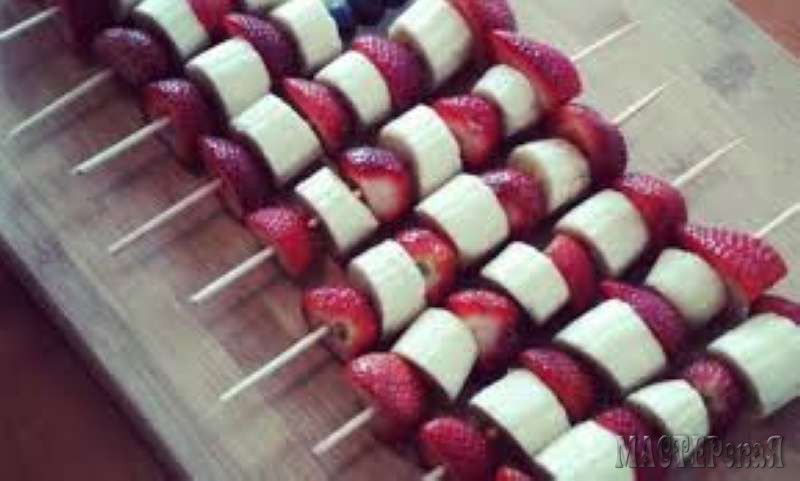 настроение, как детям, так и взрослым. Вариантов приготовления нарезки фруктов для детей масса. Я же предлагаю вашему вниманию еще один вариант - радужный фруктовый "шашлык"