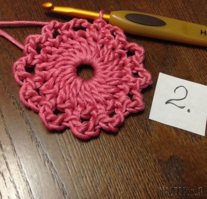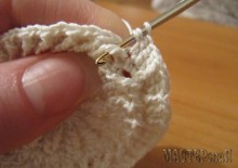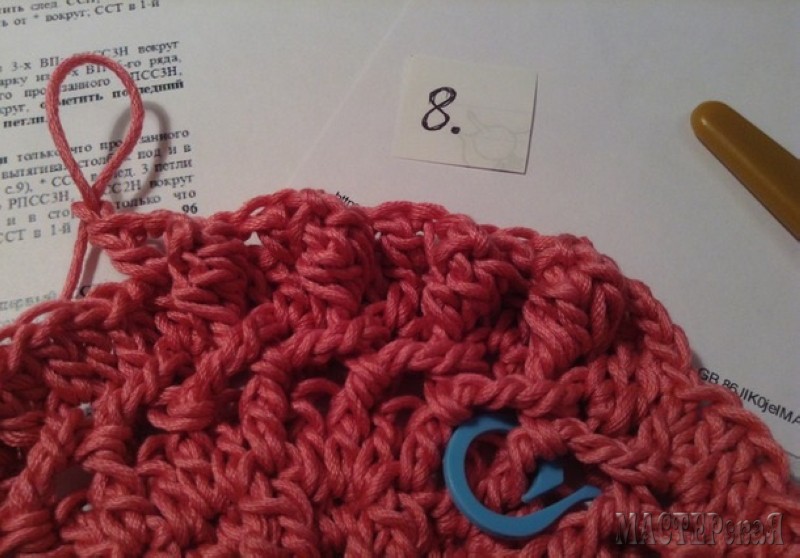 Про 7-й ряд: Сначала вяжем 3ВП, ССн в следующие 2 петли, затем работая сзади только что сделанного 2РП2ССН- это 2рп2ссн, который был связан последним в предыдущем ряду и мы сейчас будем выполнять следующую петлю работая за ним( т. е. Вы его отодвиньте пальчиками как-бы вперед(поверните немного вязание) чтобы можно было удобно вязать за ним. Теперь выполняем РП2ССН в отмеченный 2ПР2ССН вытягивая столбики под и в сторону только что сделанного 2РП2ССН.
