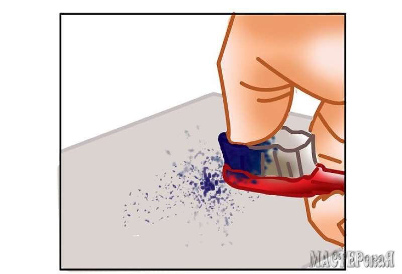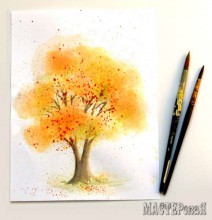 · макнув сухую кисточку в краску, быстро указательным пальцем проводите по ворсу, направив кисть на бумагу.