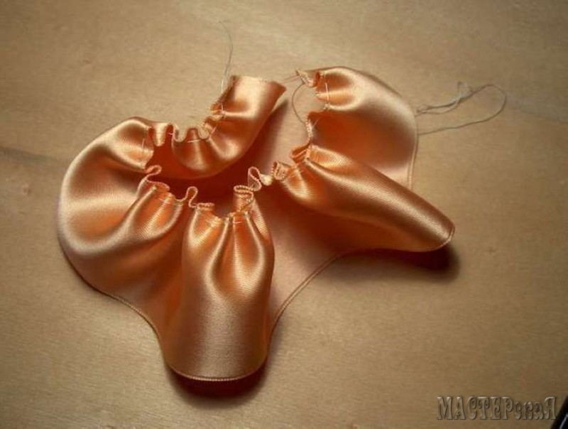 Прошейте ленту снизу небольшими стежками, как можно ближе к краю. Затем, придерживая на одном конеце ленты, с другого конца потяните за нитку, проходящую по краю, собирая ленту в складки