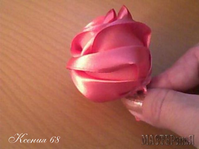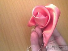 Обрезанные края ленты, лучше опалить зажигалкой или спичками. Начинаем складывать бутон.