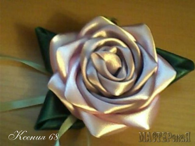 Пришейте листья из ленты зеленого цвета. РОЗА ГОТОВА.