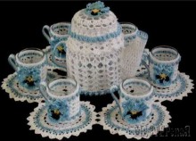 Салфетка крючком с чайником и чашками. Вязание крючком салфеток можно отнести к самому разнообразному и красивому хобби современности. Какие только не представлены модели в огромном изобилии журналов и на сайтах интернета, рукодельницы сами придумывают схемы, микшируют их и получают совершенно новые не похожие на другие модели салфеток. Вы только посмотрите на эту чудо-салфетку! Она состоит и большой центральной ажурной салфетки на которой красуется чайник и маленьких салфеточек. На них "стоят" чашки. И всё это связано крючком. Красота да и только.