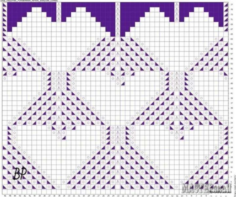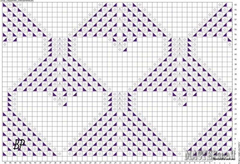 Шапочка спицами. Пряжа CEAM "PRISMA"(70%-мериносовая шерсть,30%-вискоза),145м-50г. Понадобится чуть более одного моточка.Набирать итальянским набором на спицу № 2,5 144 петли (5 раппортов петли до раппорта петли после раппорта 2 кром.п.) \ 1.Схема. 2.РАППОРТ = 24 петли ОБОЗНАЧЕНИЯ: белая клетка - лицевая петля, кружок - накид, треугольник слева - 2п. вместе лицевой с наклоном влево, стрелочка вверх - 3п. вместе лицевой раппорт в ширину отмечен красными скобками внизу схемы, раппорт в высоту отмечен звездочками справа 3.СХЕМА С УБАВЛЕНИЕМ ПЕТЕЛЬ ДЛЯ МАКУШКИ ШАПКИ темная-клетка - нет петли (ушла в убавление)