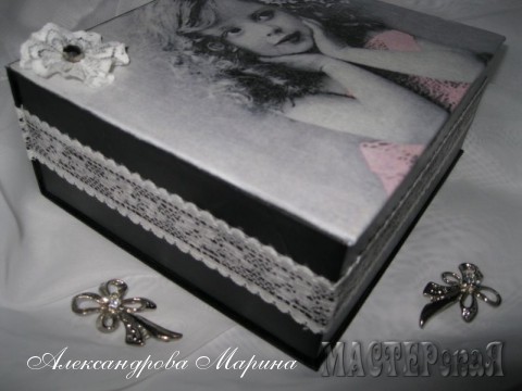 ошкурила заготовку, прошлась грунтом акриловым, крышку окрасила белым акрилом в два слоя, салфетка..затем окрасила в розовый акрил остальную наружность, наклеила гипюр, внутри морилка водная "Лимон", лак акриловый фирмы Лакра слоев 15, между ними шлифовка нулевкой, финишный лак по дереву ХВ-784!!!