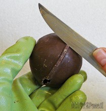 Если соединяем две половинки вместе (слегка растопив самые края), то равняем яйцо ножом.