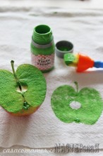 Нашла интересную идею штампа из яблока. Всё очень просто: разрезаем яблоки на две половинки и кладем их на полотенца разрезами вниз. Полотенце впитает лишнюю влагу