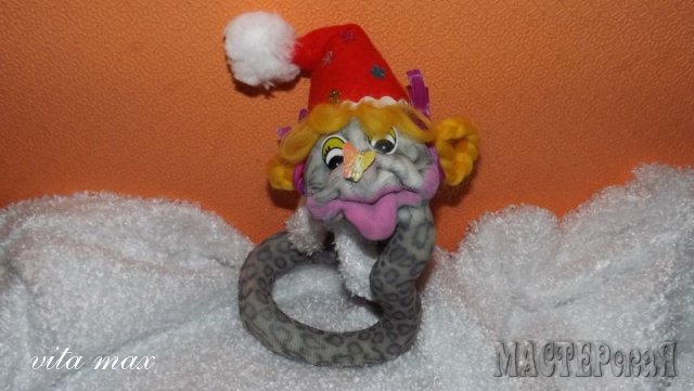 Спасибо,моя дорогая,Эти гольфики купила еще летом ,в пятнышку специально для змеек!А заказов на них не было!Китайский рынок тут рулит,столько к нам их навезли,ну ,и как-то если честно не ставила перед собой задачу змею делать!Но мой друг Костик уезжает на Новый год в Сургут,(основной подарок его будет ждать по приезду,делаю для него пирата)И вот родилась такая змейка,что бы не грустил---
