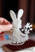 Сначала нужно нарисовать контур на бумаге, затем вырезать все пробелы. Почти как при работе с вытынанкой. Для работы понадобится резиновый коврик, на котором будет располагаться лист бумаги.