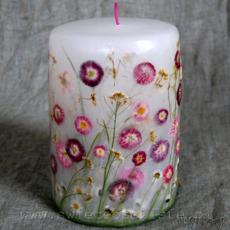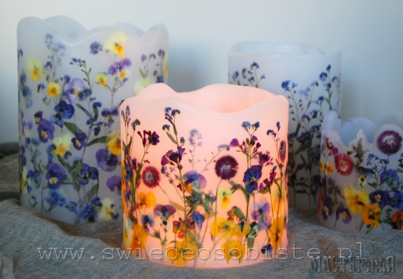 А сделать такие свечи очень просто. Нужно только засушить цветы.