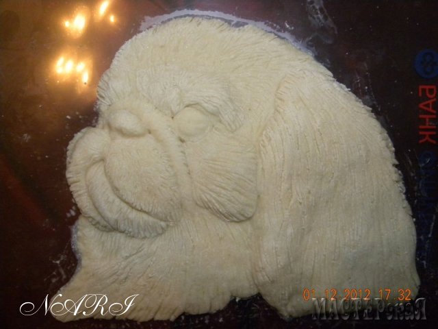 Из солёного теста руками ну и ножиком потом гуаш и акварель