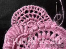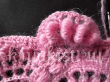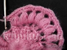 По крайнему ряду провязать"пышные узелки", вводя крючок за столбик с накидом.
