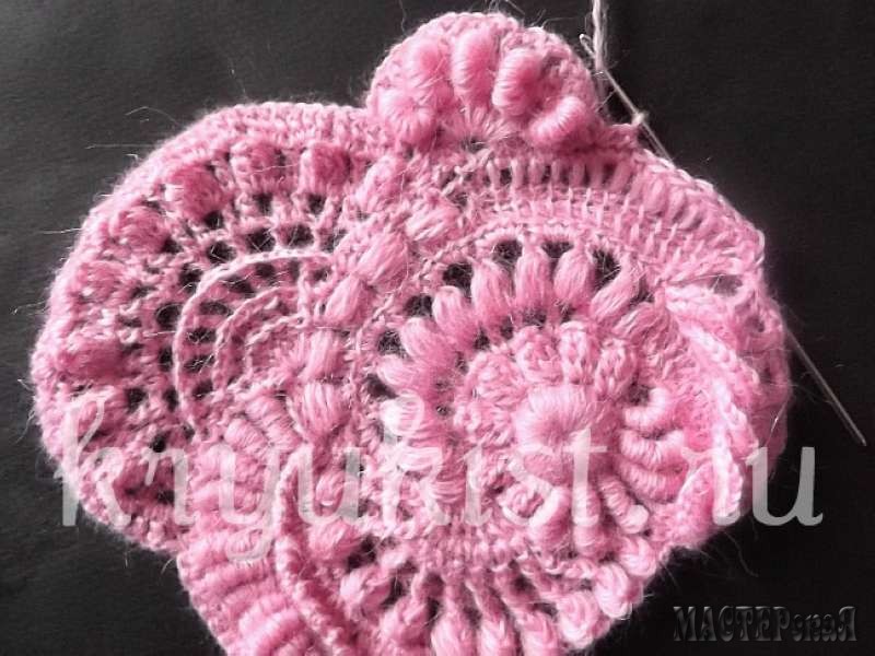 В получившемся уголке связать арку из 3 возд.п. и обвязать её "пышными" 8 петлями.