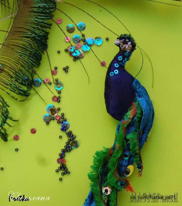 К работе я подошла со всей ответственностью: изучила строение павлина и его окраски, познакомилась с немногочисленными МК упомянутого выше мастера, продумала, что и как планирую делать, с чего начать…