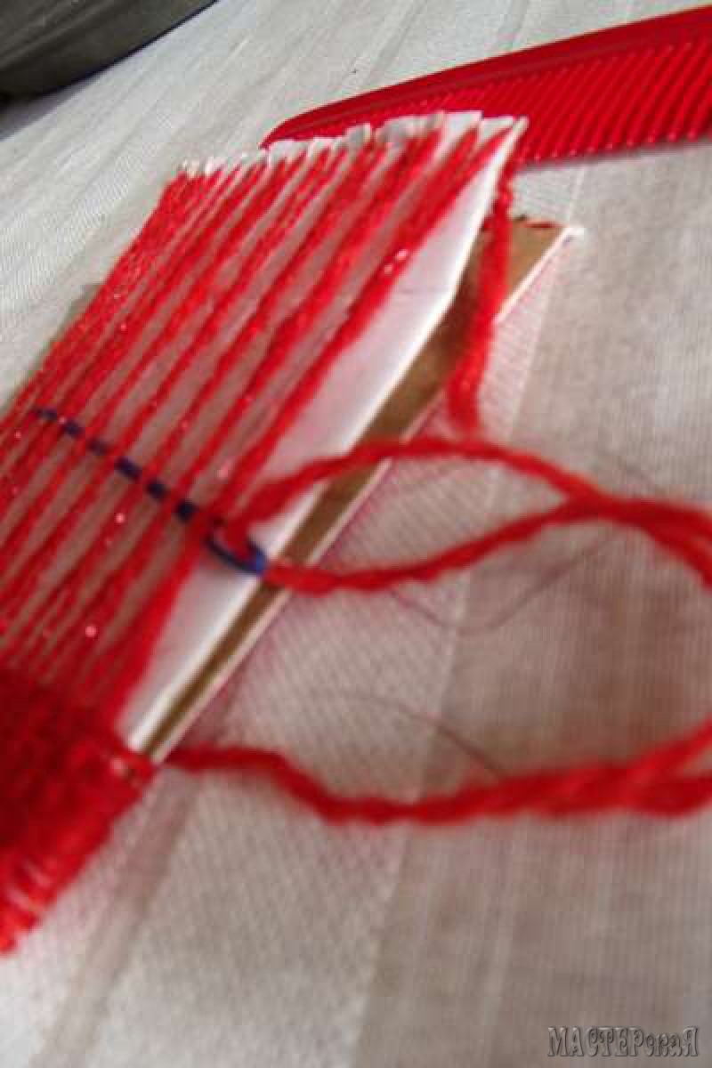 так же линейкой прижимаем нити плотнее друг к другу. Делаем это после каждого ряда
