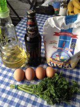 Из рецепта видно, что все как обычно, только вместо молока - пиво. Делаем тесто: поллитра пива, 5 столовых ложек с большой горкой муки,