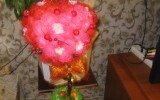 Захотелось на Мишин комод поставить что то цветущее и яркое ))) Ствол из китайской деревянной палочки (как большая зубочистка), обмотан нитками. В основе шара - скомканная бумага : )