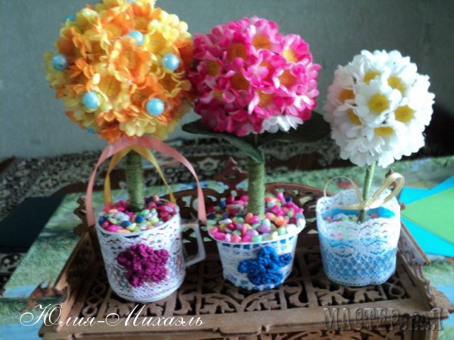 Топиарчики вс, 28/07/2013 - 17:24 Изменить отображение работыПосмотреть в виде фото Посмотреть в виде слайдов Опубликовано на masterskaja.net.Копирование с указанием источника приветствуется. Голосование за работу Не понравилось0 Понравилось0 Очень понравилось0 Отлично4 Отправить в Мой Мир Добавить в закладки Яндекс Добавить в закладки Вконтакте Класс! Рассказать в ЖЖ Добавить на Facebook Tweet This! Отправить в Мой Мир Рассказать в LiveInternet Добавить в Google Bookmarks Добавить на MicroBloggy Похожие материалы Топиарий Топиарий навстречу к... Аромат любви! Топиарий "Роза... вс, 28/07/2013 - 20:38 #1 Ксения 68 Юлечка! Ты и на такое способна? Красиво получилось. А что за основу брала? Из чего ствол? Мне же любопытно пн, 29/07/2013 - 11:40 (Ответ на #1) #2 Юлия-Михаэль Захотелось на Мишин комод поставить что то цветущее и яркое ))) Ствол из китайской деревянной палочки (как большая зубочистка), обмотан нитками. В основе шара - скомканная бумага : ) вс, 28/07/2013 - 21:16 #3 тамиха